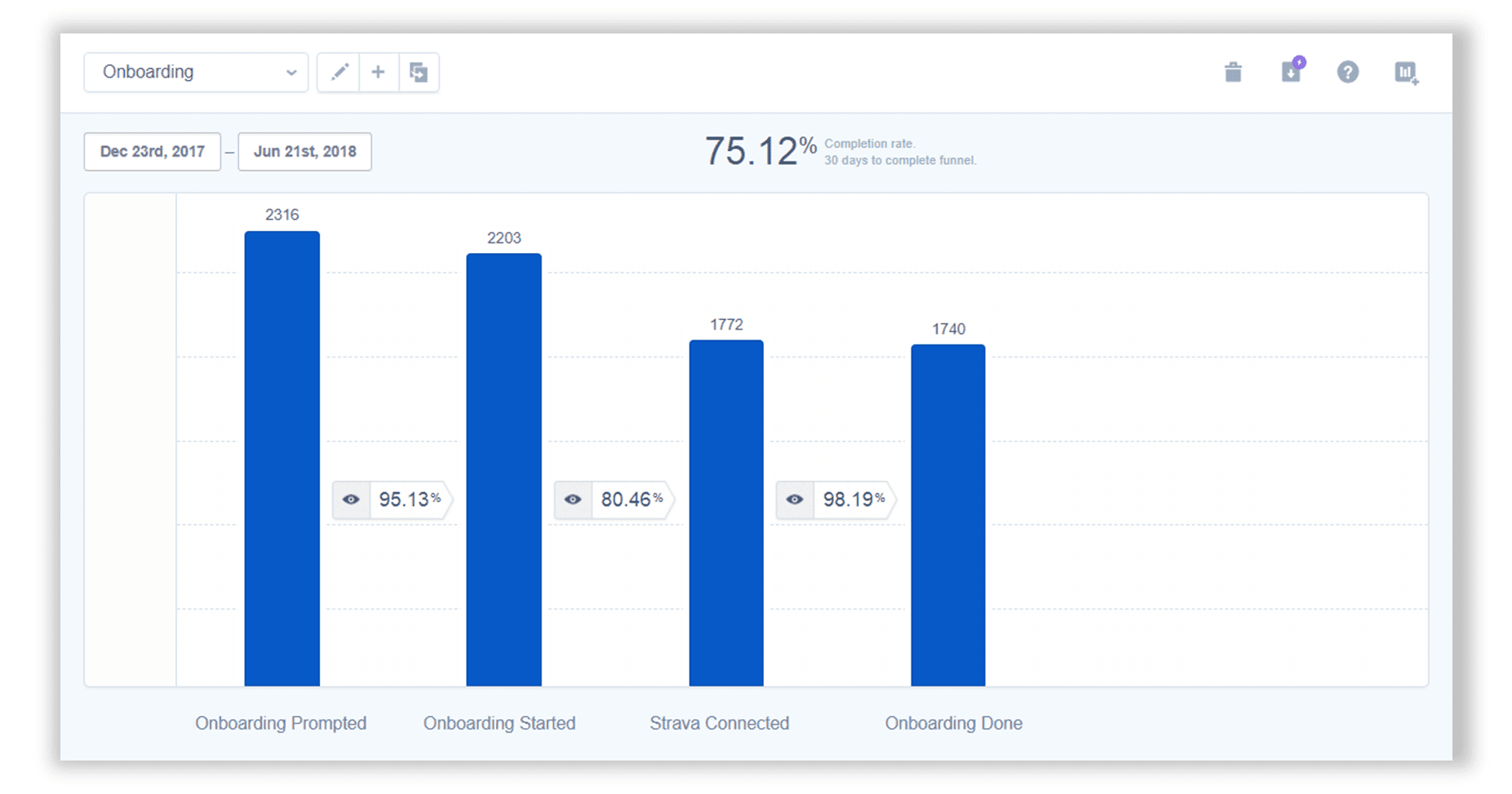 We can see that linking the account, going from Onboarding Started to Strava Connected, is the most impactful action both in absolute and relative terms. Got your own important step? Let's continue!
