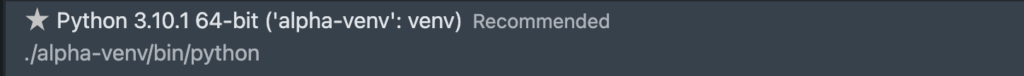 The Python: Select Interpreter command displays all available environments. The following image shows the environment that we need to select.