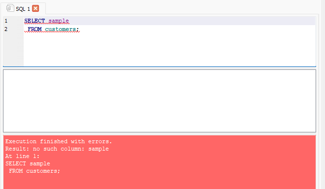 line 1, and specifies that the error occurs because the column listed doesn’t exist.