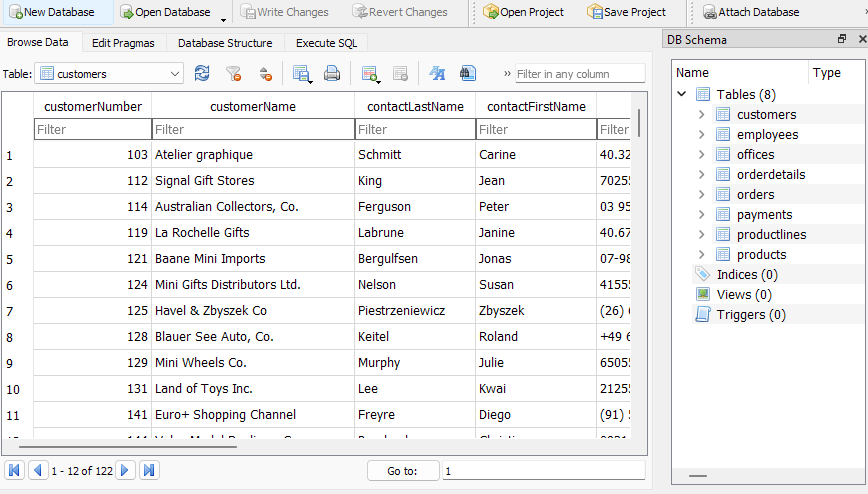 SQLite is lightweight and beginner-friendly. After installation, load your database and preview table schemas to understand the structure.