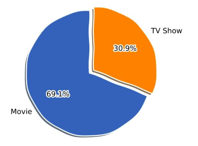 Next, I decided to take a look at the ratio of movies to TV shows.