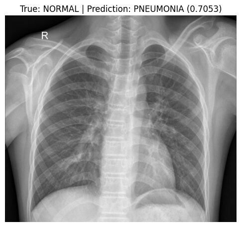 print(f" Class probabilities: Normal={result['probabilities'][0]:.4f}, Pneumonia={result['probabilities'][1]:.4f}")