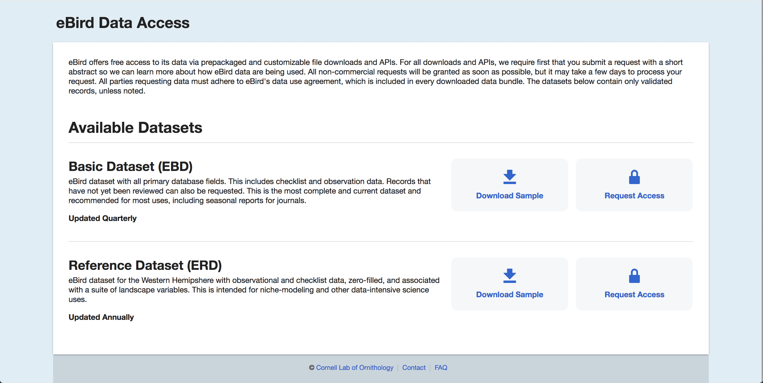 Googling the keywords "bird migration," "database," and "america," we found a couple websites that had information on bird migrations. The first, eBird, contains bird migration data hosted by Cornell labs. The second is from the US Fish and Wildlife Services (USFWS) website, which uses partnerships and citizen research data to create their reports. We wanted to use data sets from both services so that we could cross check the data and determine inconsistencies.