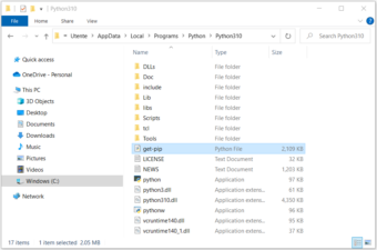By default, the Python installation is stored in the folderAppData. The entire path could look like the following: