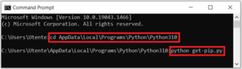 get-pip.pyfile are stored using thecdcommand - Launch the installer by running the following command: