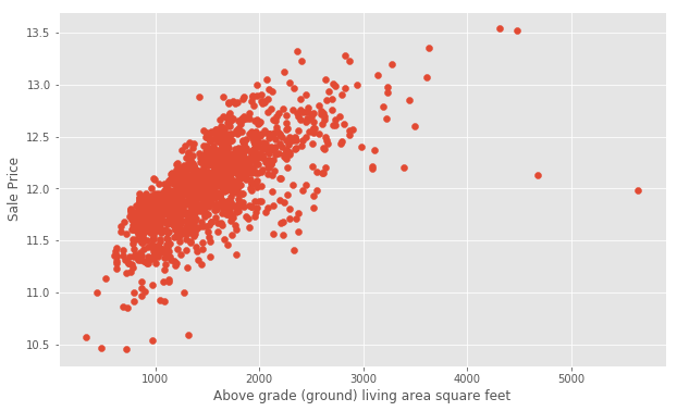 Now that we've transformed the target variable, let's consider our features. First, we'll check out the numerical features and make some plots. The .select_dtypes() method will return a subset of columns matching the specified data types.