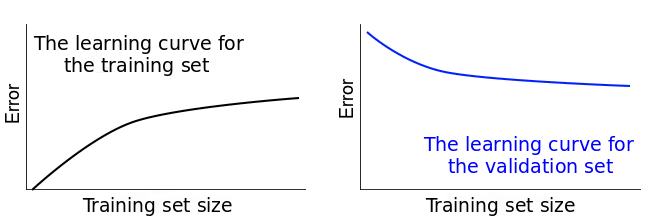 • By examining the training error: its value and its evolution as the training set sizes increase.