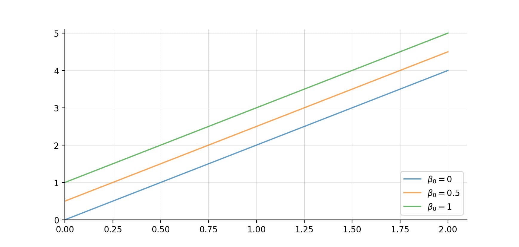 If we take the example above, a model specified by y= Beta0 + Beta1x, and play around with different Beta 1 values, we have something like