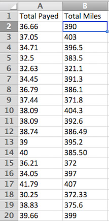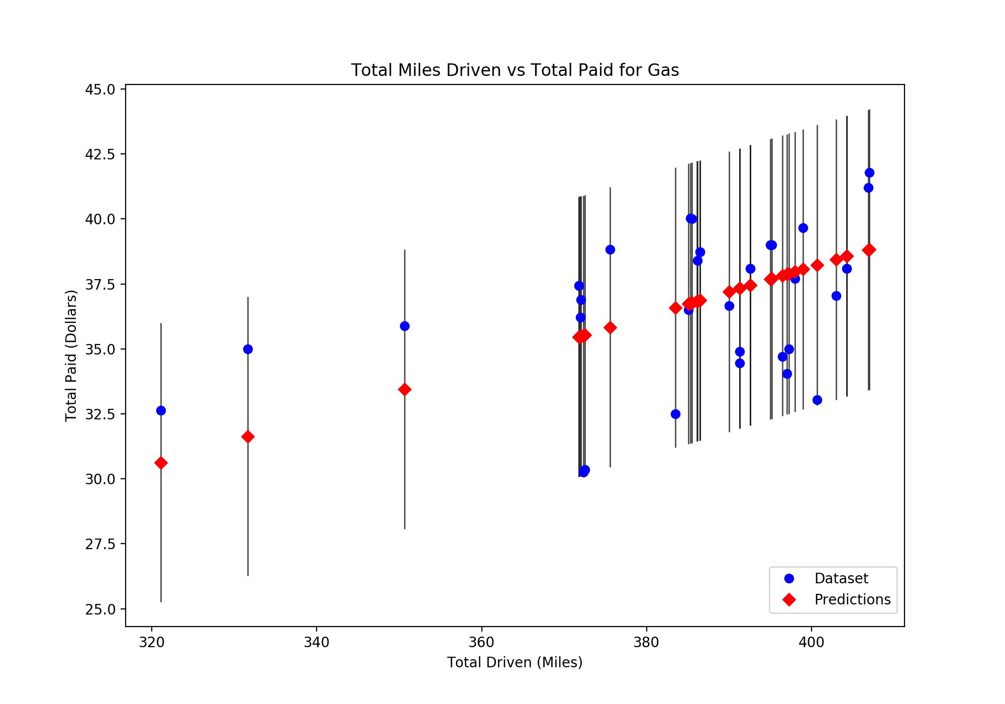 The model will use data from the past to learn about the relationship between the total miles driven and the total amount paid for gas.