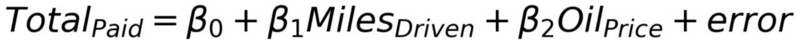 (You'll notice that we don't have the parameter Beta 0 in our model. In our use case, having an intercept — or a constant value when our dependent variable is equal to zero — doesn't make much sense. For this specific model, we’re forcing it to go through the origin, because if you're not driving, you won't be spending any gas money.)