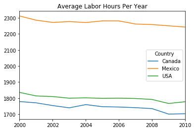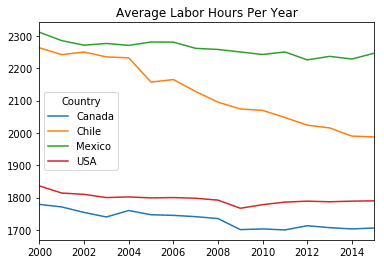 north_america.transpose().plot(title='Average Labor Hours Per Year')