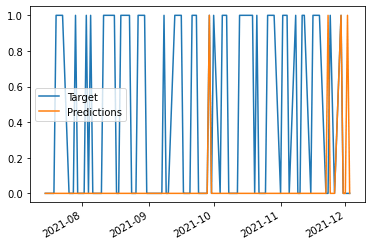 combined = pd.concat({"Target": test["Target"],"Predictions": preds}, axis=1)