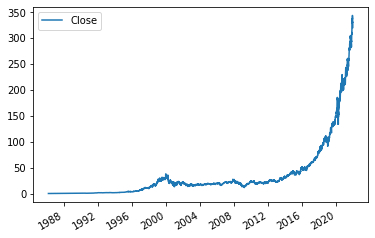 We'll use data for a single stock (Microsoft) from when it started trading to the present.