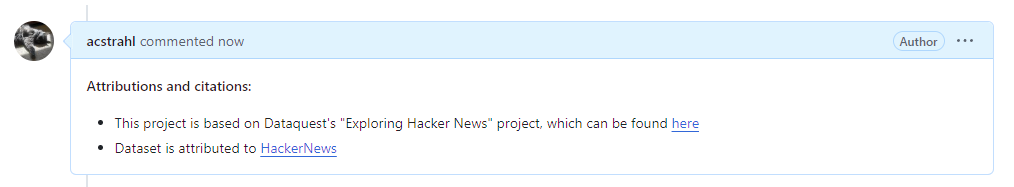 You might also want to include attribution or citation credits for any data, images, or code you borrowed. An easy way to do this is by leaving a Gist comment that briefly states the source and how the material was used. For example, if you used a dataset from Kaggle, you could comment, “Data courtesy of [Dataset Name] from Kaggle, retrieved from [link].” This way, anyone viewing your Gist can quickly see where your materials came from and give proper credit.