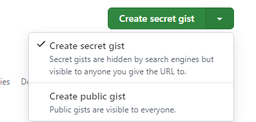 You’ll also notice a button with dropdown options for your Gist’s visibility: Public or Secret. Public Gists can be found by anyone, even via search engines, and are best if you want to share your work widely. Secret Gists won’t show up in general searches but can still be accessed if someone has the direct link. If you’re nervous about making your work too visible too soon, feel free to keep it secret until you’re ready.