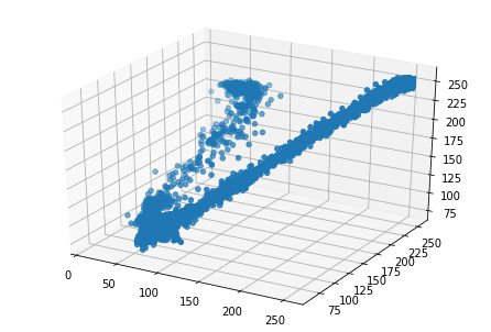 Since we are dealing with three variables for clustering — the Red, Blue and Green values of pixels — we can visualize these variables on three dimensions to understand how many dominant colors may exist.