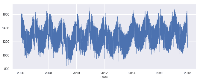 ax.plot(opsd_7d['Consumption'], linewidth=2, label='7-d Rolling Mean')