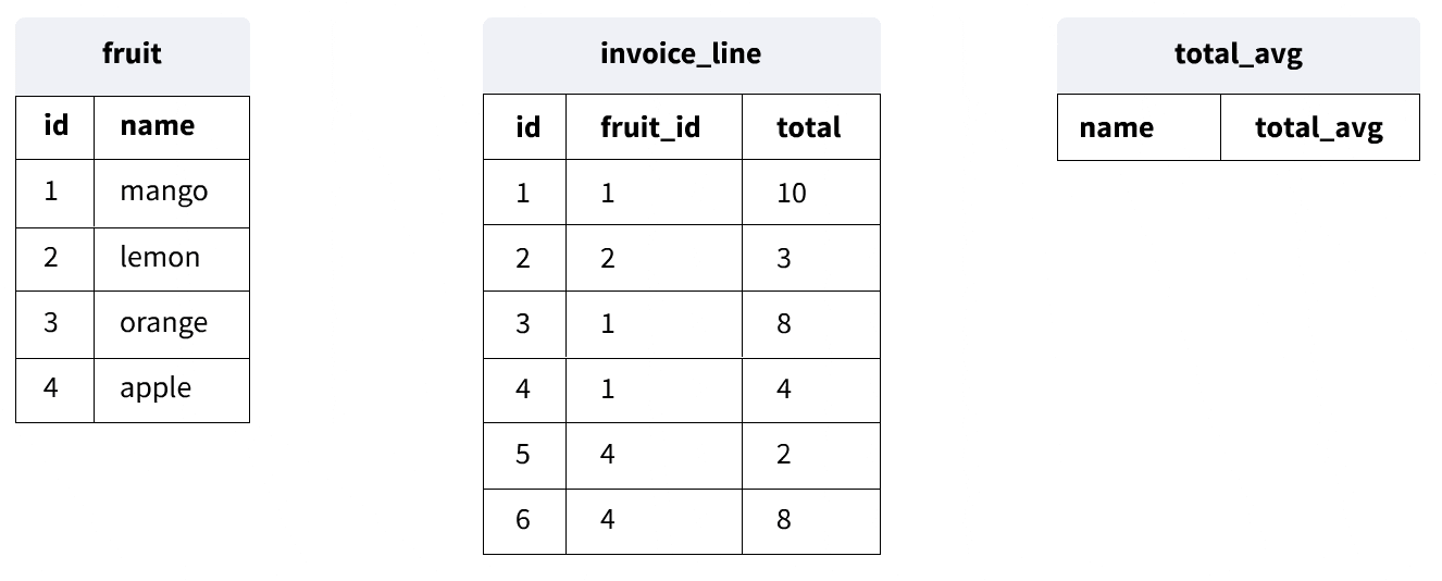 I often use these in our bug tracking system at Dataquest. For example, to join customer information with their average invoice totals:
