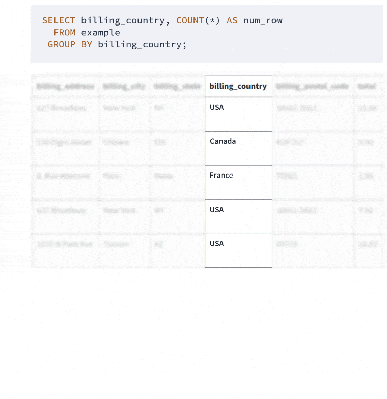 See how GROUP BY sorted our data into country groups, and COUNT(*) counted up the invoices for each? It's a quick way to get a sense of your data.